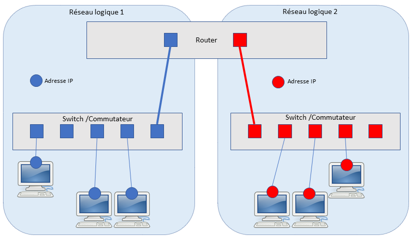 Pour effectuer le routage, on considère deux types de machines ou composants du réseau : les routeurs, qui servent d’intermédiaire dans la transmission d’un message, et les hôtes qui émettent ou reçoivent les messages. Lorsque le routeur se trouve entre deux réseaux dépendant d’autorités différentes, comme entre le réseau local d’une entreprise et l’Internet, on utilise alors une passerelle ; cet élément peut être considéré comme plus évolué qu’un simple routeur en raison de la conversion entre protocoles effectuée.